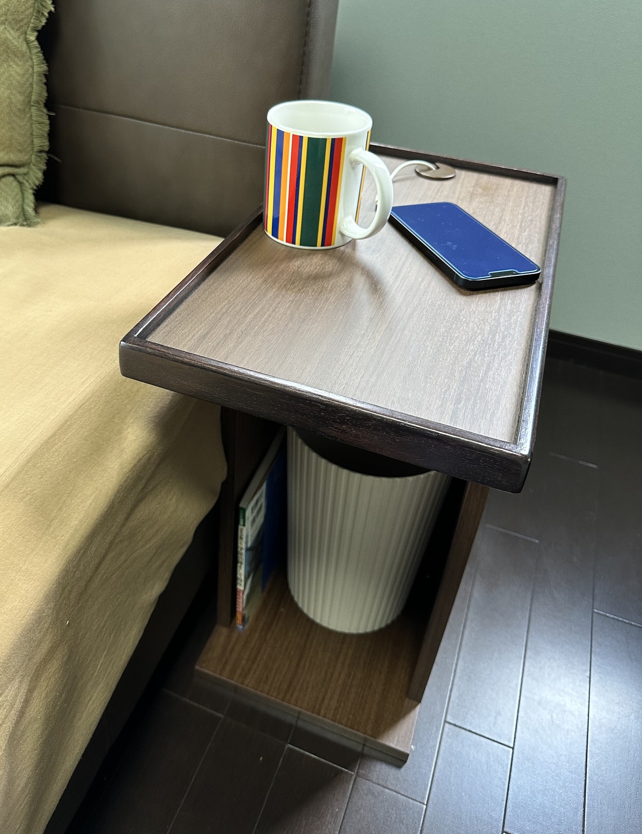 サイドテーブルとしてだけでなく、小物や雑誌を収納するのにも便利です。