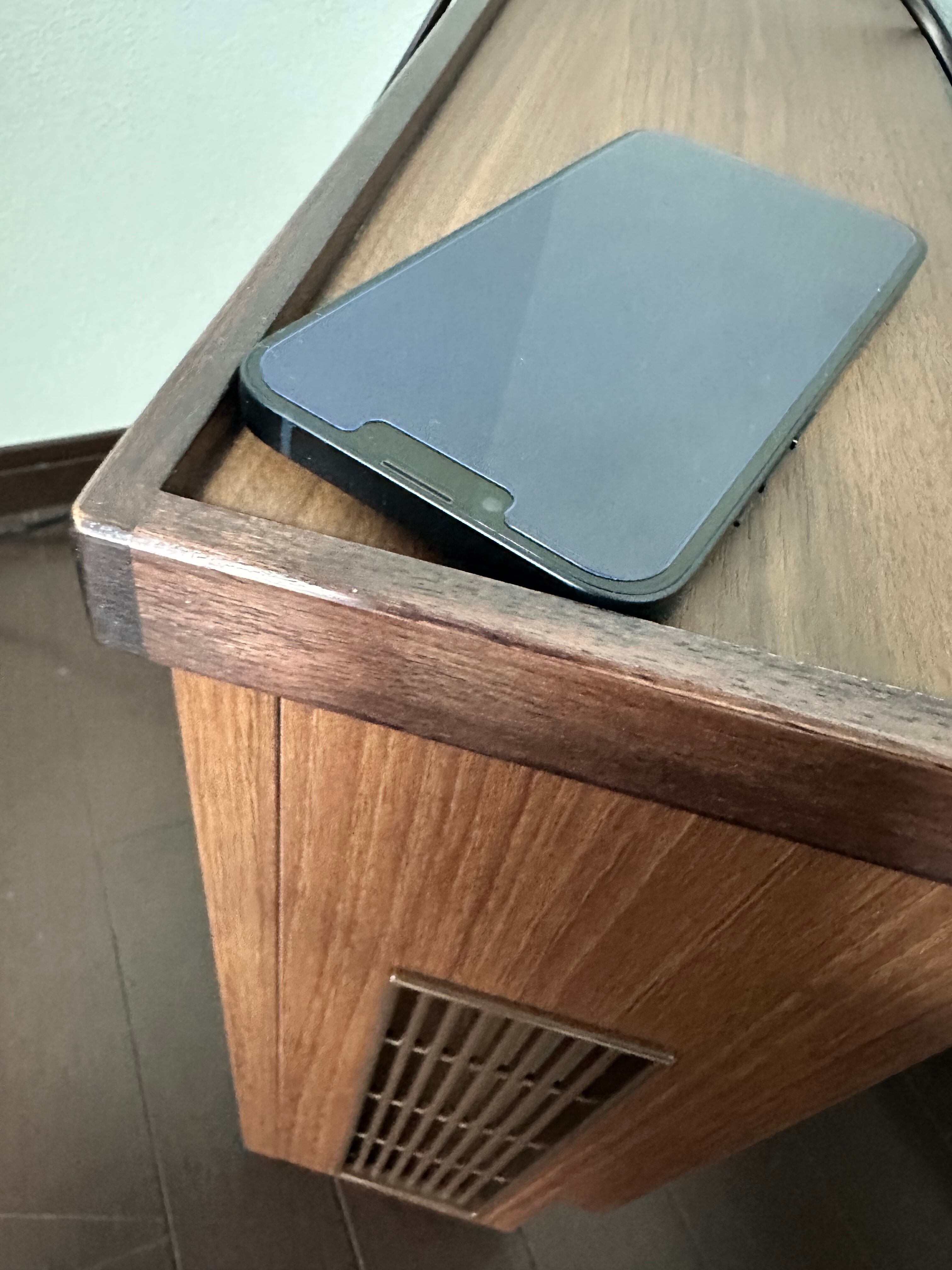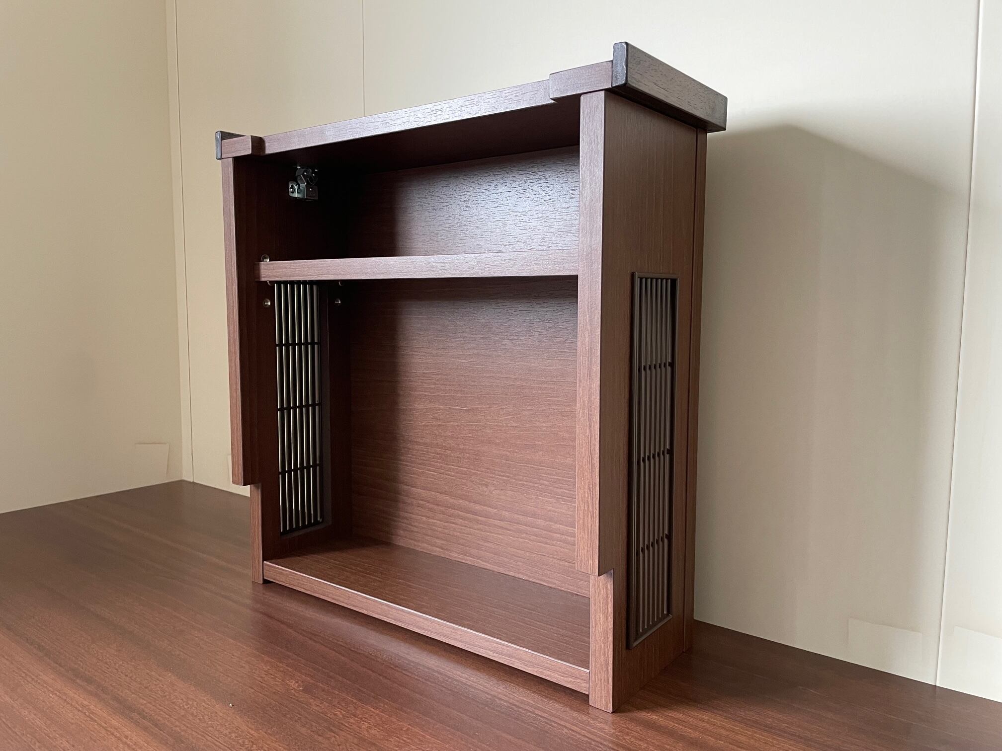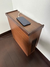木目の外観と、ワイヤレスデバイスの整理に最適な内部レイアウトが魅力的。